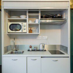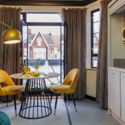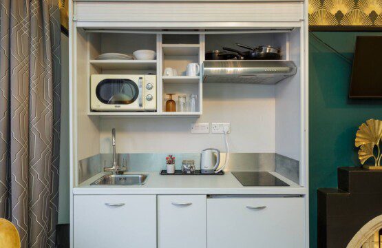 Throw open the Juliet balcony doors and enjoy a coffee while watching Southsea come to life below. Inside, you’ll find a comfortable bed, compact kitchenette with dining nook, and a modern en-suite bathroom with shower.
