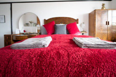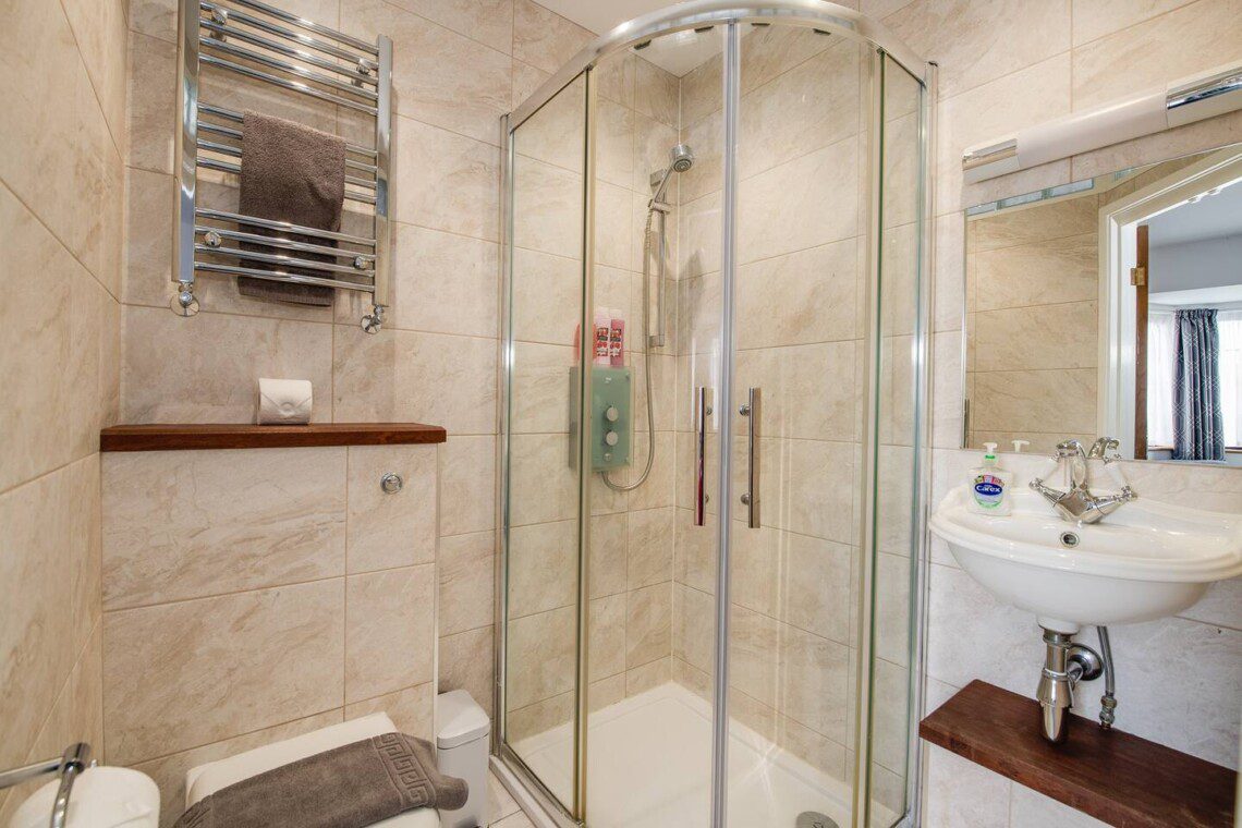 The adjoining en-suite modern bathroom has a shower, toilet and sink. If you’ve got little ones staying with you, we can also provide a travel cot and/or highchair, but please advise in advance if these are required, so we can be sure they are available for your stay.